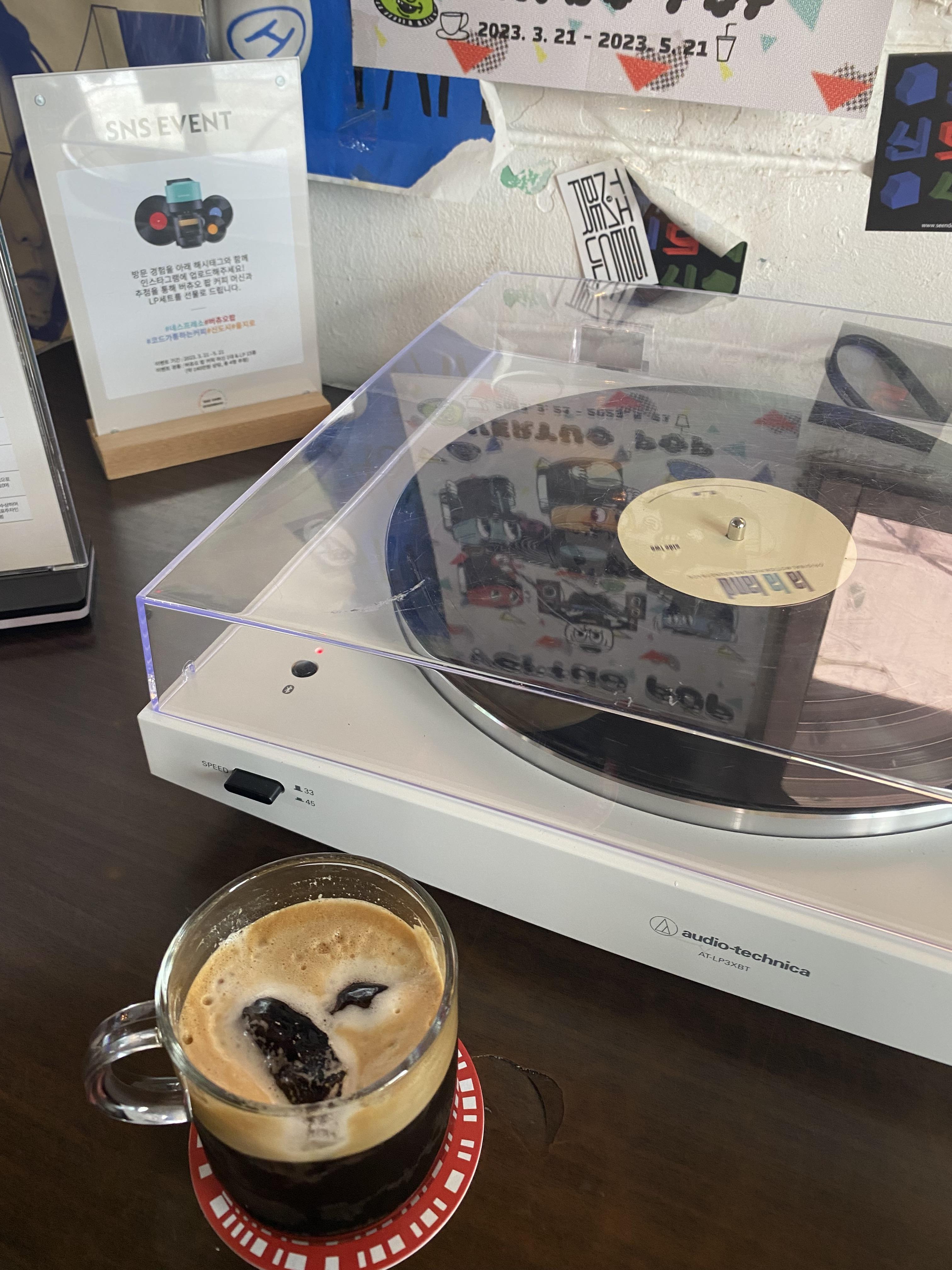 시원하게 얼음이 들어간 커피를 마시면서 내가 듣고 싶었던 노래를 LP 감성으로 들어보며