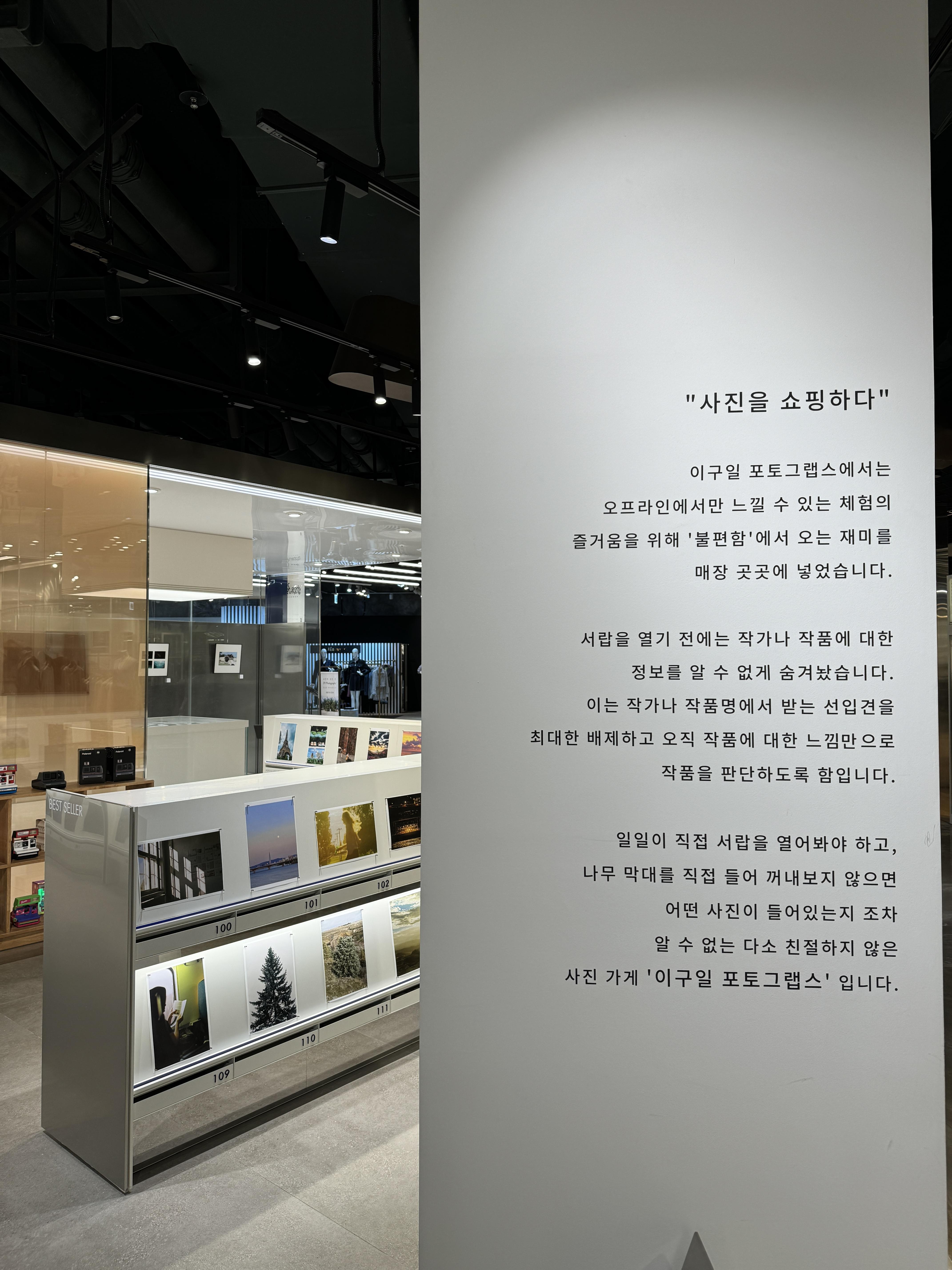 사진의 모든 곳, 이구일포토그랩스입니다. 이구일 포토그랩스는 사진 관련 복합 문화 공간으로 사진작품, 스튜디오, 사진서적, 커뮤니티, 카메라 등 사진 관련 모든 제품 및 경험을 한 곳에서 만