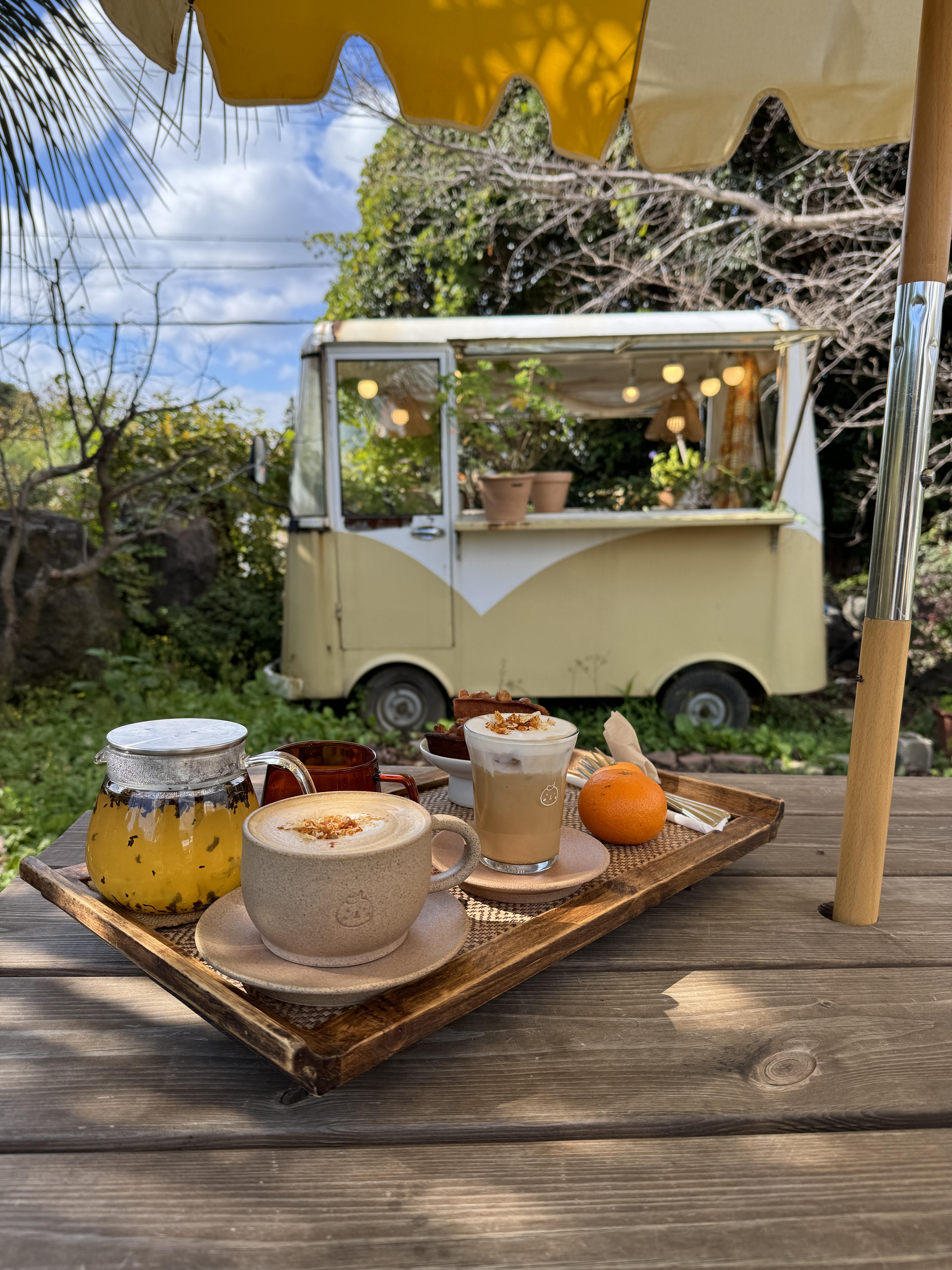 카페로 갔고, 감귤이 담긴 라테도 있었고